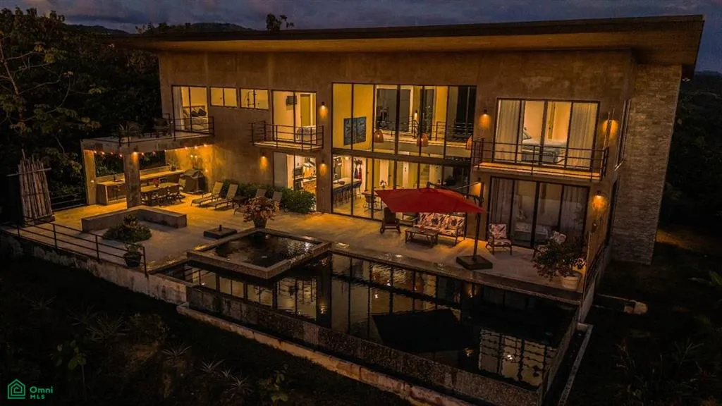 This brand new luxurious, surrounded by jungle, 180 degrees ocean view 4 bedrooms 4.5 bathrooms home sits on the ridge of a very accessible small mountain in Playa Hermosa Jaco. The lot measure 6815m2 and is surrounded by jungle, mountain and breathtaking ocean, sunrise and sunset views. You can enjoy the wonderful sunset from the large private infinity pool and jacuzzi. This new contemporary house has an open floor plan with vaulted 2 story ceiling with windows from floor to ceiling in the living room to capture wonderful ocean and mountain views. All four master bedrooms feature ocean views and ensuite baths. The total construction is of 500m2 or 5380 sq feet. The access to the house is about 7 minutes from the highway, Playa Hermosa and the one if the most important thing is that the roads are all paved to get to the house. Downtown Jaco is a 15 minutes drive maximum. Another great feature is that there is an electric gate at the bottom of the road for security with a digital code exclusively for the home owner of this upscale community with no Hoa. The house also features 2 cars covered garage, 3 more parking spaces and comes fully furnished, electric instalations for solar panels, electric curtains in master bedrooms and living room, tinted windows with nano ceramic, comes turnkey for rentals or just to come and enjoy your favorite tropical drink watching the beautiful sunset! Don’t miss this opportunity!