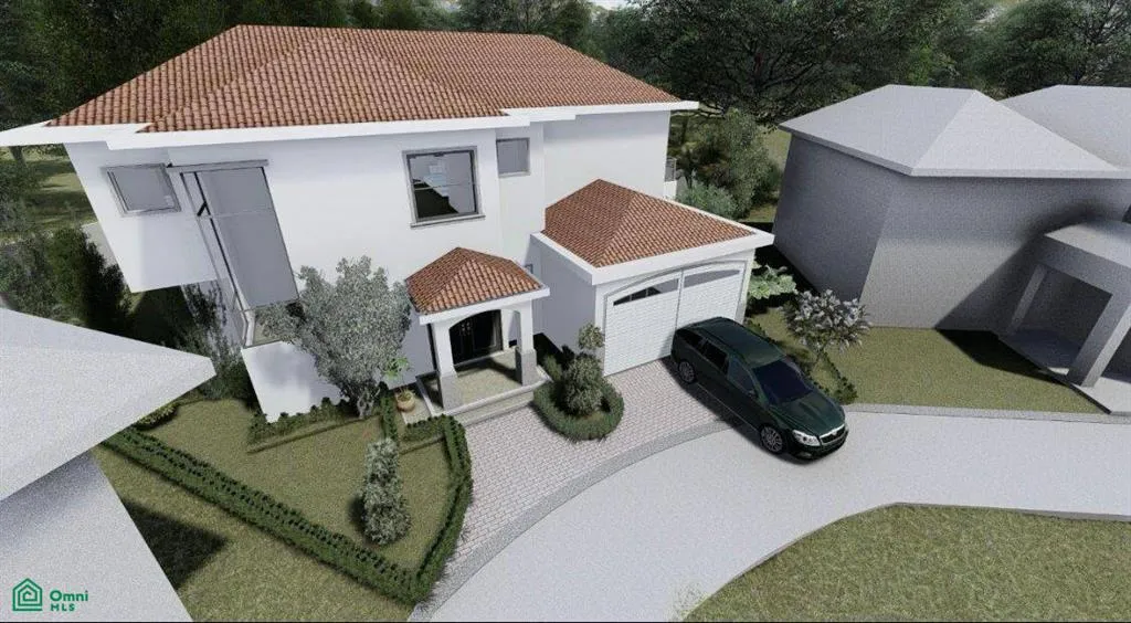 The lot already has the papers it needs to start building. There are plans for a house with 3 bedrooms and 3 bathrooms. The house will have a pool and a place to park your car.