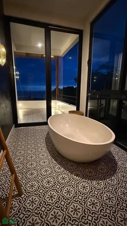 This stunning two-story residence seamlessly blends high-end architecture with natural finishes like molina stone, caña brava wood, and teak, offering a luxurious yet grounded lifestyle. Designed for those who value comfort, sustainability, and close access to one of Costa Rica’s most sought-after surf beaches—also a protected sea turtle sanctuary—this home features 3 bedrooms, 3.5 bathrooms, a private office, and an outdoor home gym. The exterior living space is ideal for entertaining, with an outdoor kitchen equipped with a built-in BBQ and wood-fired pizza oven, a covered lounge with integrated sound system and Big Ass Fan, and a partially covered saline infinity pool with LED lighting and Mexican stone detailing. Additional highlights include an outdoor hot water shower, solar panels, an energy-efficient electrical system, and an A/C-controlled equipment room. The entire home benefits from a whole-house water filtration system and a citronella distribution system. Rich textures and premium materials such as natural stone, caña brava wood, and teak are found throughout, complemented by elegant stone accents and high-end doors. The property also offers a paved driveway, two-car garage, multiple storage areas, surfboard racks, and private walking trails surrounded by lush landscaping. Enhanced with a security camera system, alarm, and advanced drainage, the lot includes a ready-to-build platform for future expansion. Just a five-minute walk to a pristine, protected beach and only 20 minutes from Nosara Airport, the location also boasts frequent sightings of monkeys, anteaters, exotic birds—and even whales.