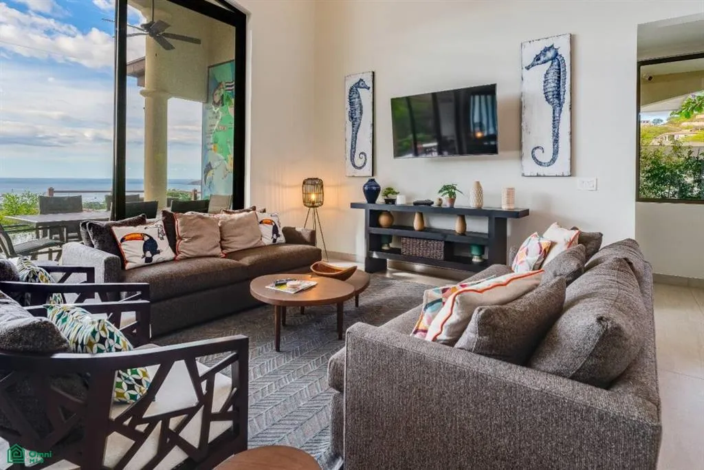 Welcome to Pacifico 46! Situated in the vibrant heart of Playas del Coco, this exquisite 4-bedroom, 4.5-bathroom residence spans an impressive 4,590 square feet (550 m²) and is located in the prestigious gated community of Pacifico. From the moment you step through the grand front door, you’ll be captivated by breathtaking panoramic ocean views that create the perfect backdrop for tropical coastal living.