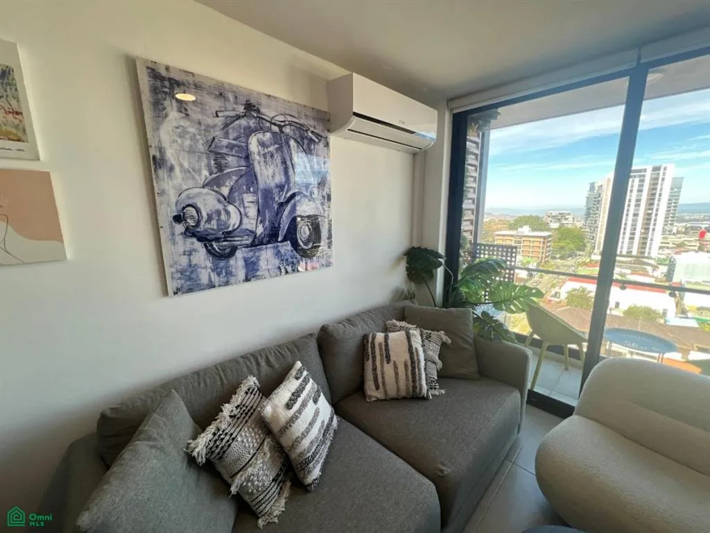 Fully furnished 47 m² apartment for sale, located on the 9th floor of the prestigious Sky Garden Nunciatura condominium, featuring breathtaking sunset views, as well as panoramic vistas of the mountains and Central Valley.