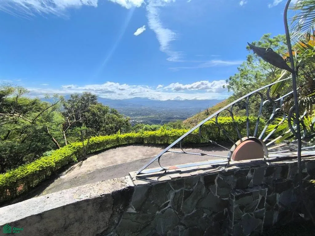Perched near the top of a hill in Atenas, this exceptional property offers breathtaking panoramic views of the volcanic mountain range and the Central Valley. The main house features four bedrooms, including a master suite upstairs, and a ground-floor terrace that spans the entire length of the house—perfect for enjoying the stunning scenery.