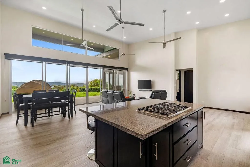 The kitchen is a true highlight, complete with a large island for gathering, high-end appliances including a gas cooktop, Miele stove, and an oversized subzero fridge and freezer that make entertaining or meal prep a breeze. The high ceilings and modern finishes throughout add a touch of elegance to every corner. A whole-house water filtration system ensures clean, reliable water throughout, and fiber optic internet makes it easy to stay connected while while enjoying life in paradise.
