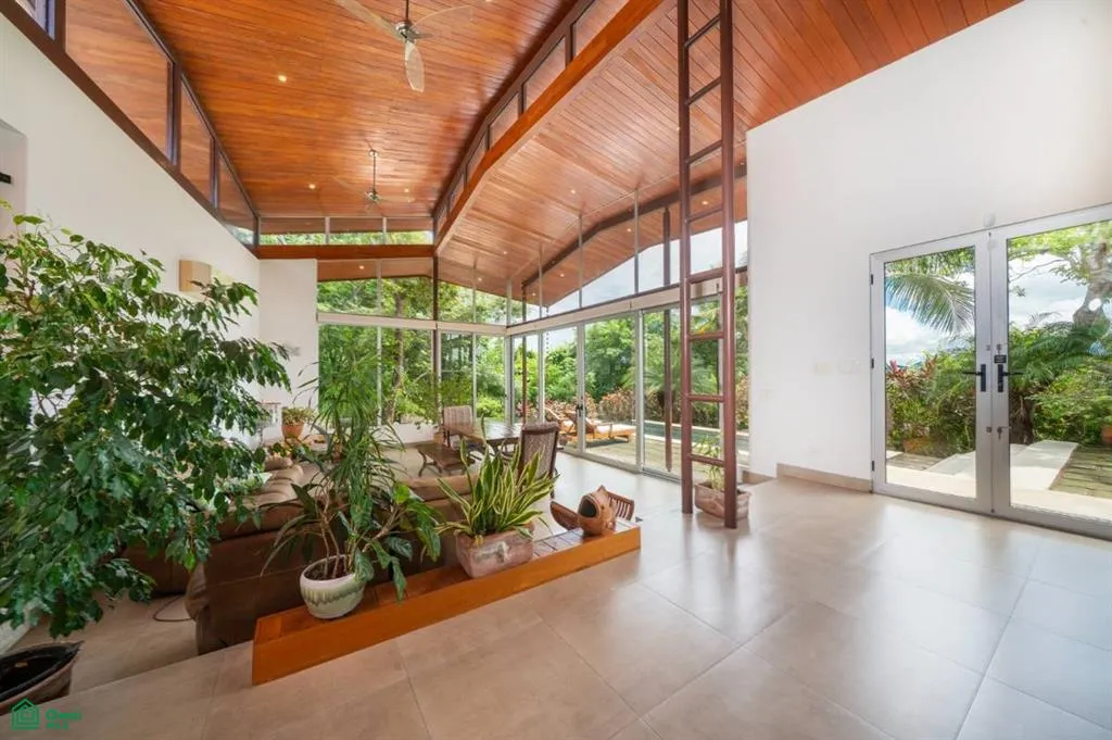 Discover this stunning modern villa nestled in an exclusive and peaceful residential community. Situated on a spacious 5,705 m² lot, the property offers panoramic views of the valley and the surrounding rainforest. Designed with elegance and tropical charm, it features two spacious master bedrooms with ensuite bathrooms, a bright open-concept living area, and a unique boomerang-shaped pool that blends into the natural landscape.