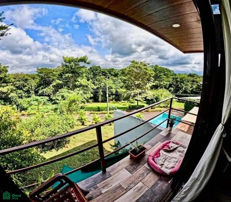 Outdoors, you will find a spacious terrace, a platform for yoga or exercise, a green area with shade trees, and as the main highlight, a private saltwater pool with a terrace, perfect for enjoying Orotina’s warm climate and creating unforgettable moments with family and friends.