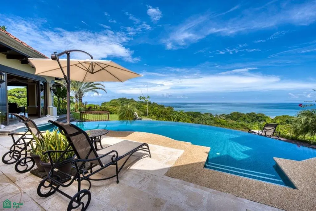 The heart of this home is the grand living area, which seamlessly integrates indoor and outdoor living. Large windows and sliding glass doors open up to the stunning outdoor space, where the highlight of the property awaits—the infinity edge pool. Here, you can soak in breathtaking panoramic ocean views that stretch from Punta Dominical all the way to Manuel Antonio National Park. Whether you’re enjoying a morning swim, lounging by the poolside, or hosting a sunset gathering, the spectacular views provide a picturesque backdrop for every occasion.