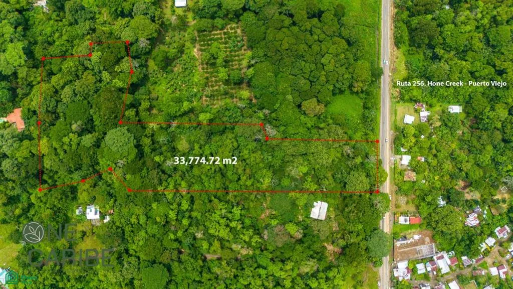 3.3 hectares (8.5 acres) of fertile, flat land with more than 60 meters of prime road frontage. Mature Durian trees in full production, just minutes from Puerto Viejo and world-famous Caribbean beaches.