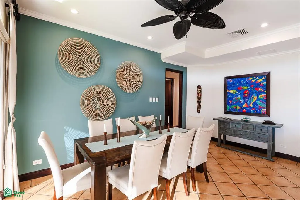 Inside, the condo features elegant Costa Rican hardwoods and a clean, modern tropical style. The kitchen includes solid wood cabinetry, stainless steel appliances, granite countertops, and a convenient breakfast bar—great for everyday living or entertaining. The principal suite offers ocean views, a king bed, and its own private bathroom. A second suite also features ocean views and a private bath. Two additional bedrooms—one with a full bed and one with twin beds—provide comfortable space for guests or larger groups. A dedicated laundry room, ample storage, and covered parking add to the home’s convenience.