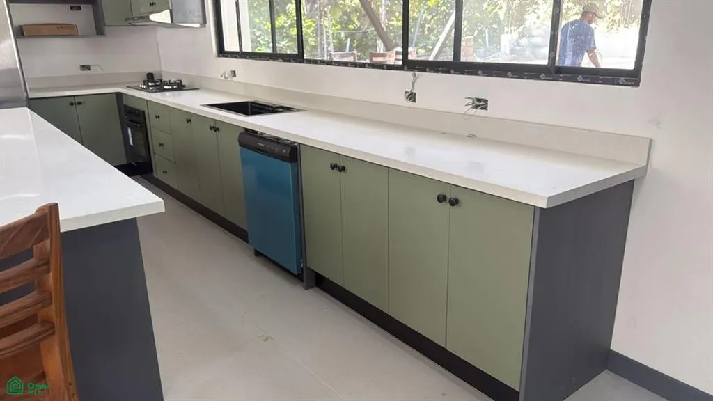 The villa will be delivered fully finished in November, including appliances such as a refrigerator, stove, oven, and dishwasher.