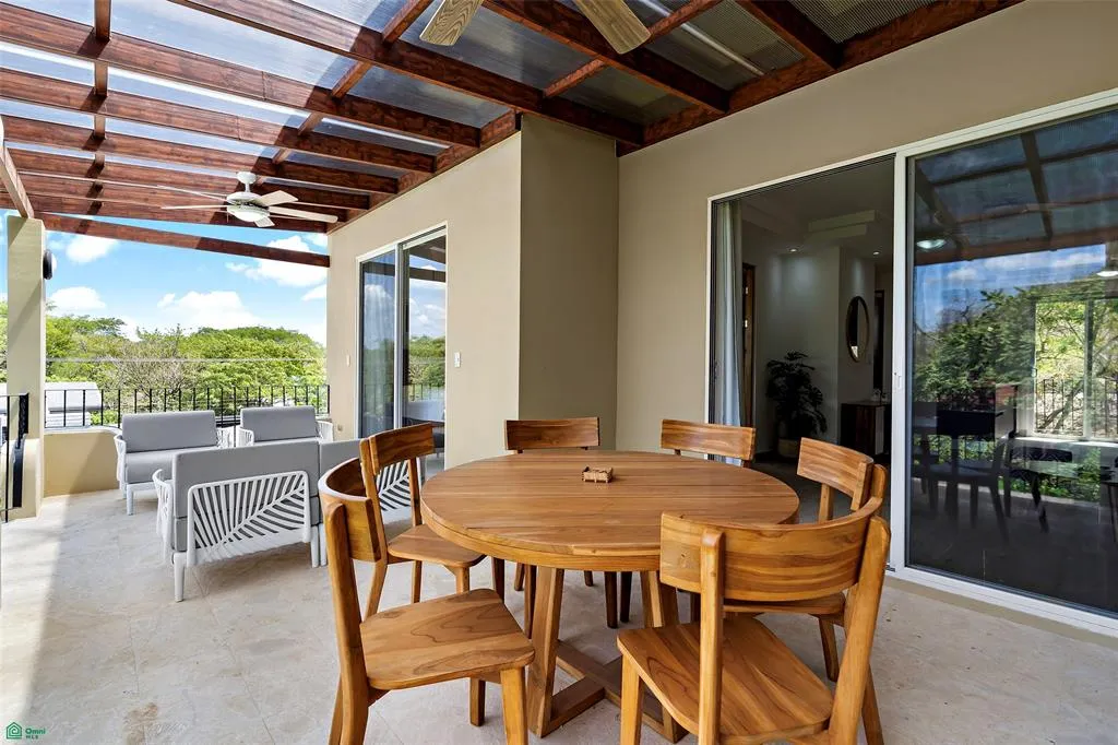 Completed in 2023, Las Gavuotas #5 is located on the top floor of the new tower. This beautifully decorated condo is a delightful turnkey vacation rental, as well as it is appointed and provisioned as a comfortable permanent residence. An easy walk into Tamarindo town this condo complex is tucked back from the town center in a tranquil neighborhood. It is the perfect investment property to earn income while enjoying all the Costa Rica has to offer. The spacious 3rd level balcony deck enjoys the pleasant breezes to keep it cool, and provides the perfect setting for family and friends to enjoy outdoor dining. The professionally decorated interior boasts a comfortable living room suite for entertaining, a sumptuous primary suite, complete with ensuite bath and direct balcony access, and a lovely guest bedroom. The guest room has a huge closet, and a wonderful bay window overlooking the trees. The second bathroom serves the living area as well as the second bed room. There is a separate laundry room with washer/dryer and storage. The virtually new kitchen has upgraded applicance, and lots of storage. The shaded, open and airy balcony deck makes Gaviostas #5 a very special place to call your Costa Rica home. The wonderful pool and BBQ pavillion are a great place to meet and mingle with your friends and neighbors, and enjoy the perfect Tamrindo weather. This condo is easy to show.