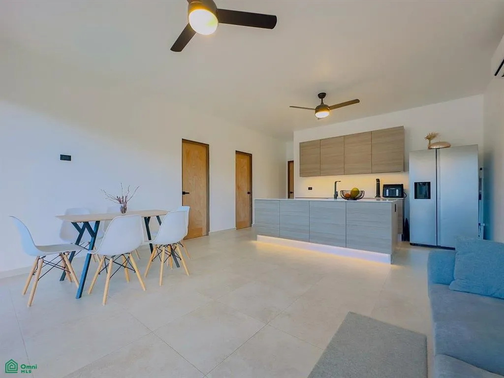 Step into the house through the large sliding glass doors and find the living room, dining room and modern design kitchen with a wet area island that also works as a breakfast bar, on your back find the hot area with an induction cooktop and a side-by-side fridge. Find push-open cabinetry with soft-close drawers.