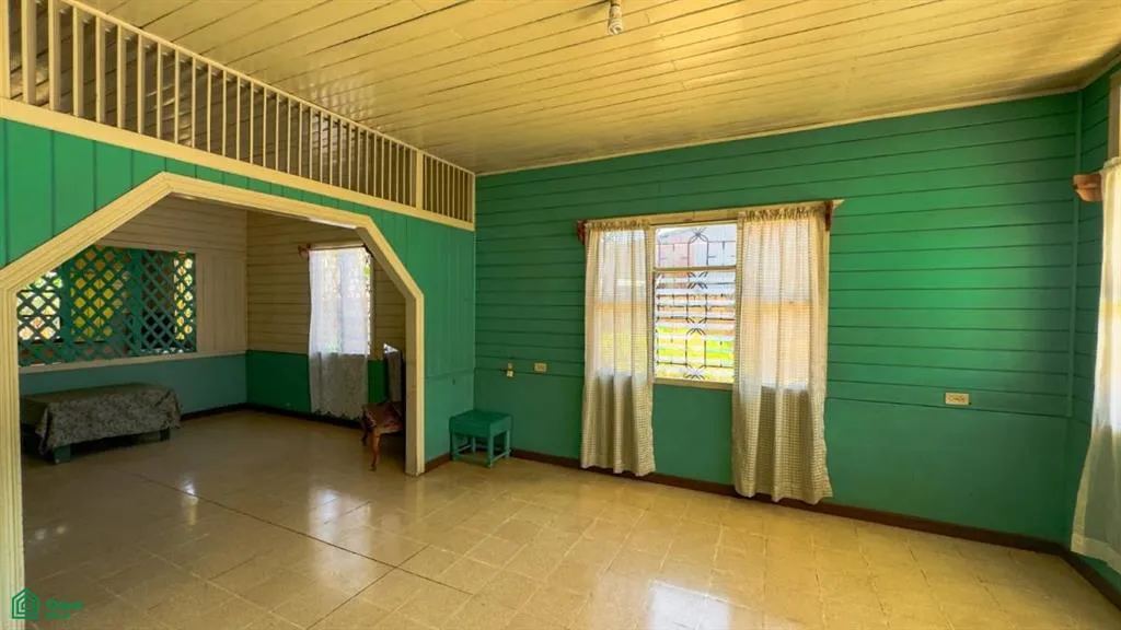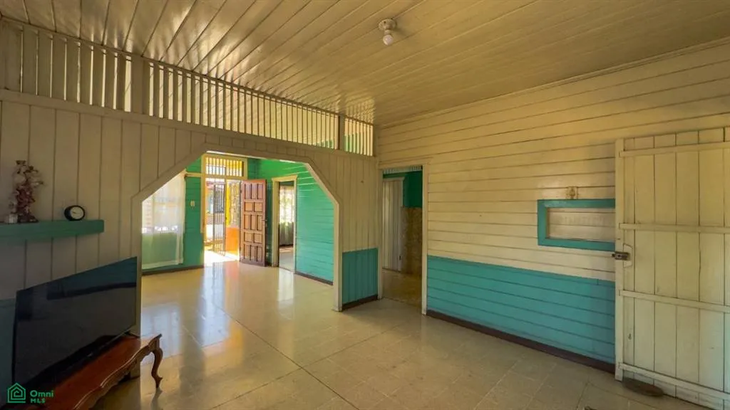 Traditional 2-bedroom, 1-bathroom home located on a 732 m² lot (approximately 7,879 sq ft) in the heart of Esparza, Costa Rica, just 3 blocks from the central park and 1 block from Highway Ruta 1. The home features tile floors and classic wooden walls, reflecting the charm of traditional Costa Rican architecture.