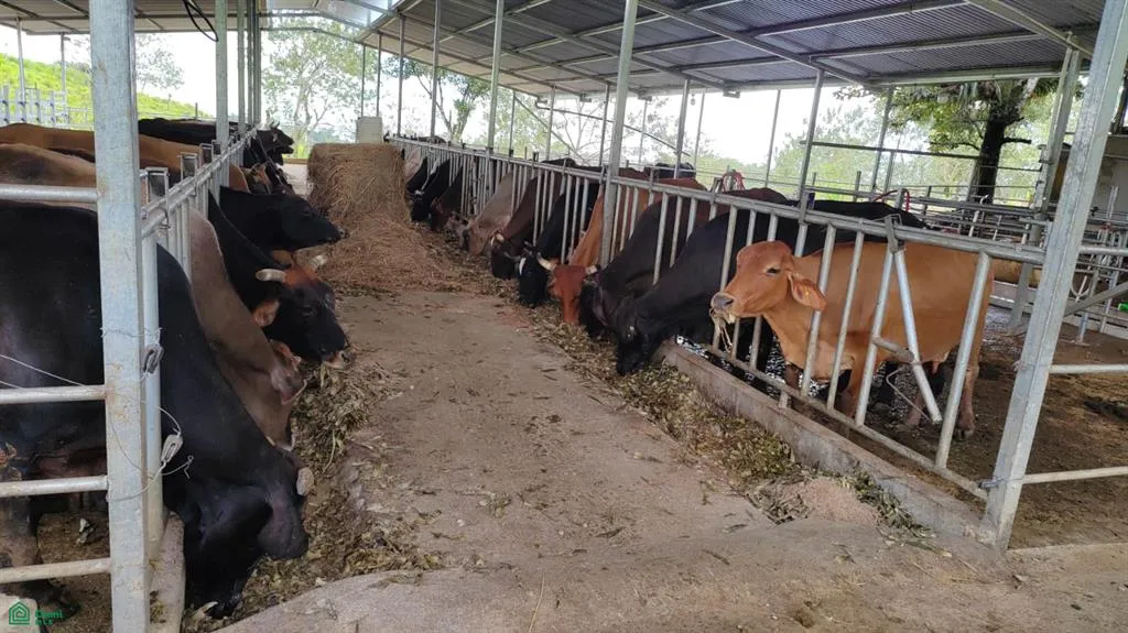 Electric fences. Sidewalks through the middle of the farm. Includes a manure pump and a pressure pump for washing the corrals.