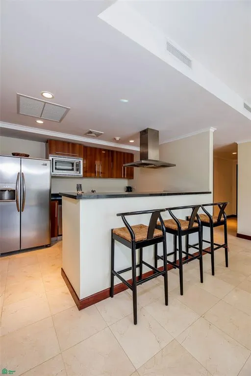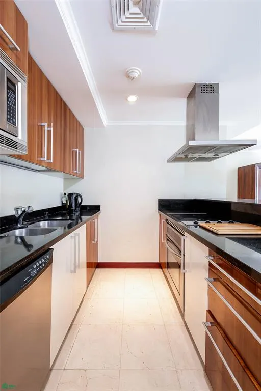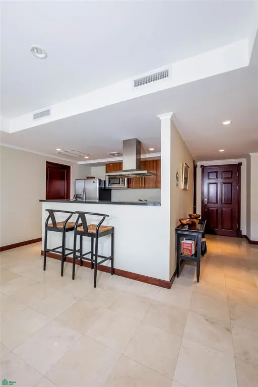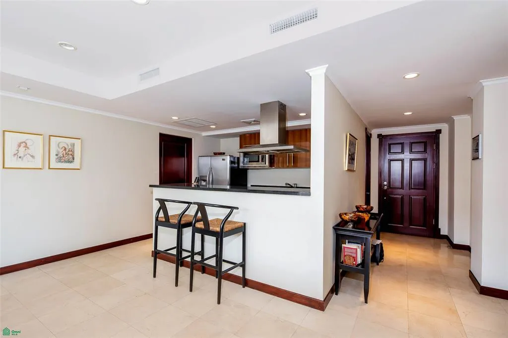 Step inside this meticulously designed apartment, which features elegant marble flooring throughout the social areas, adding a touch of timeless sophistication to the living and dining spaces. The open concept layout seamlessly integrates these areas, creating a bright and airy atmosphere perfect for both relaxation and entertaining. Residences of this caliber represent the refined lifestyle increasingly sought within Costa Rica real estate, particularly in Escazú’s most established residential communities. The modern, fully equipped kitchen is a chef’s delight, featuring premium finishes and top of the line appliances. A convenient half bath (guest bathroom) is also located in the social area.
