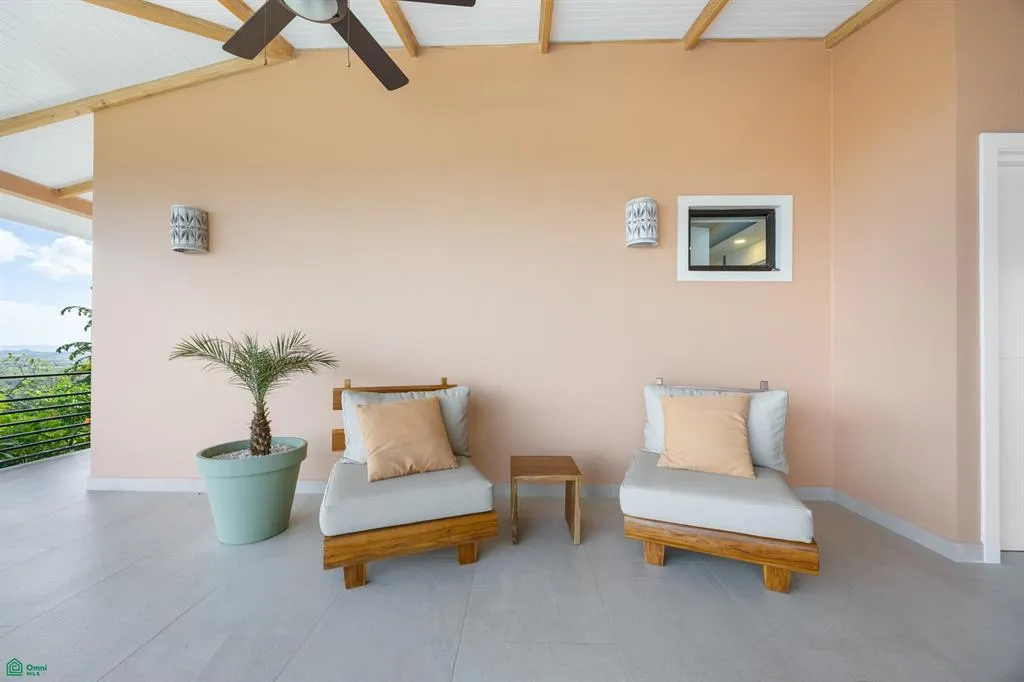 The main villa has been decorated with care by a French interior designer, giving each room a stylish and welcoming atmosphere. All four bedrooms are spacious and have large floor to ceiling patio doors that showcase the ocean and jungle views. Each bathroom is thoughtfully finished with walk-in showers, modern fixtures, and elegant touches to create a spa-like experience. The open-concept living area flows naturally onto the outdoor terrace, with cozy seating, a flat-screen TV, and high-speed internet, making it a perfect space to unwind after a day in the sun.