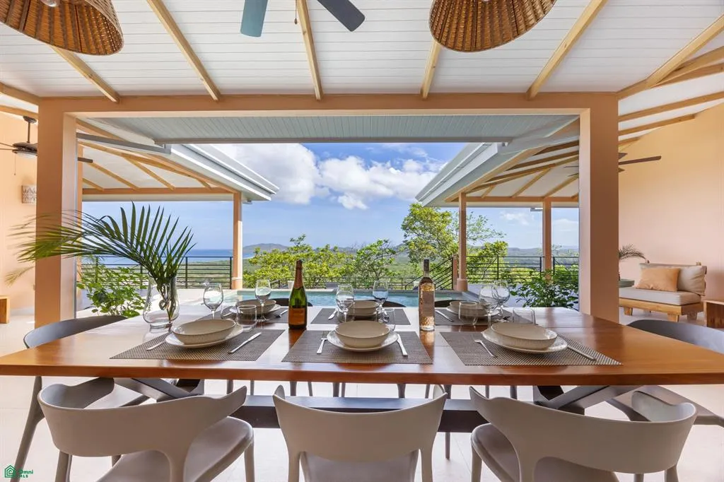 Welcome to Villa Chiric, a stunning hilltop estate with panoramic views of Tamarindo and Playa Grande. This luxurious retreat offers the perfect balance of elegance, comfort, and tropical charm, making it ideal for family vacations, romantic getaways, or a private escape with friends. Featuring a beautifully designed main home with 4 bedrooms and 4.5 bathrooms, along with an attached but separate 2-bedroom, 2-bathroom guest casita, Villa Chiric provides ample space and privacy for all.