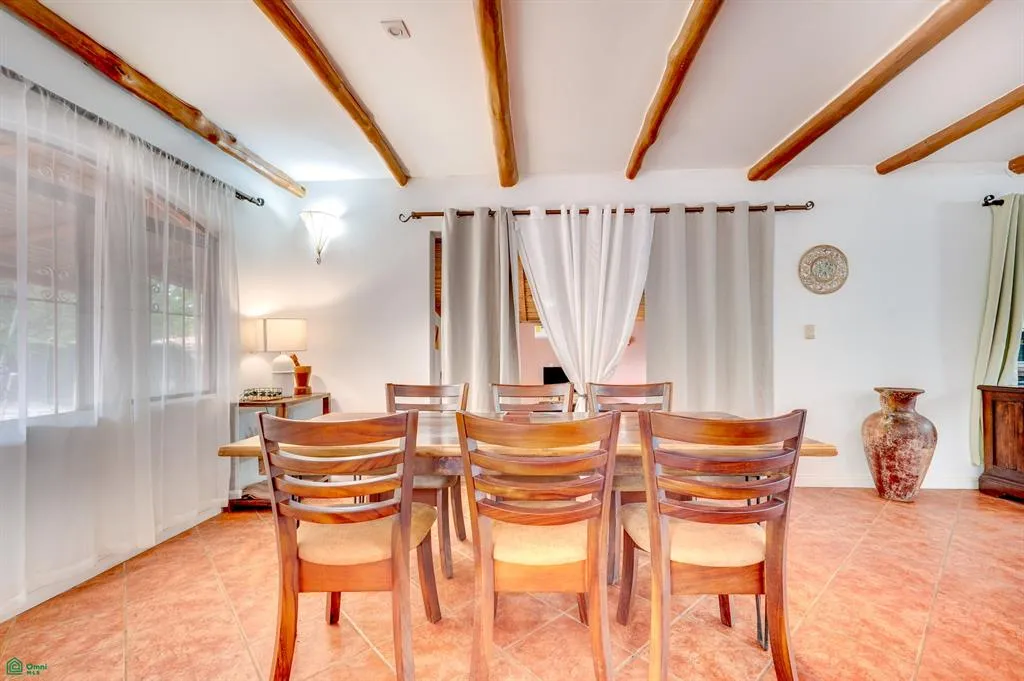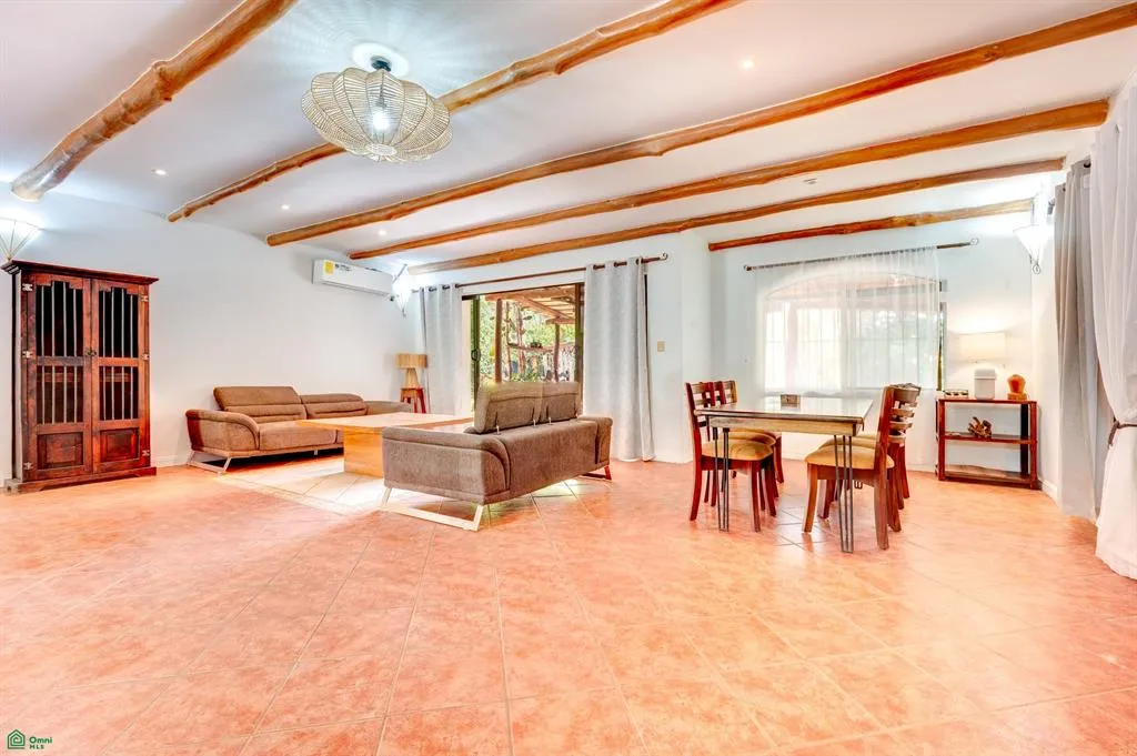 The main house, built with a Spanish-inspired architectural design, features spacious interiors, high ceilings, and a functional layout that promotes natural airflow and privacy. It includes three bedrooms, three full bathrooms, air conditioning, and is offered fully furnished. Outdoors, a private 40 m² pool and a 20 m² rancho create an ideal setting for entertaining, relaxing, and enjoying the tropical lifestyle. The landscaped garden includes mature vegetation, flowers, and fruit trees, adding charm and a refreshing natural environment.