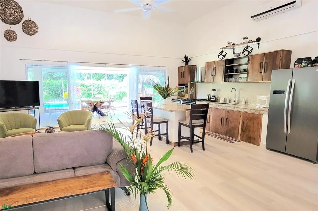 Amazing opportunity to own a brand new house with 4 bedrooms within 5 minutes of Tamarindo! Casa Mango is part of a small private community of 5 homes called Finca Isarocca and divided into 2 sections – the left side of the property (visually separated by the main entrance) is an empty lot (for sale) and Casas Mango. The right side of the property has been sold a few years ago and has one main home and 3 small homes rented long and short-term.