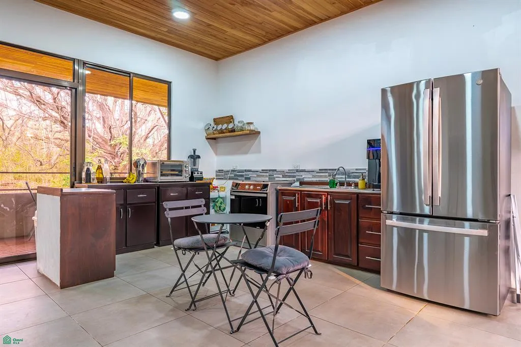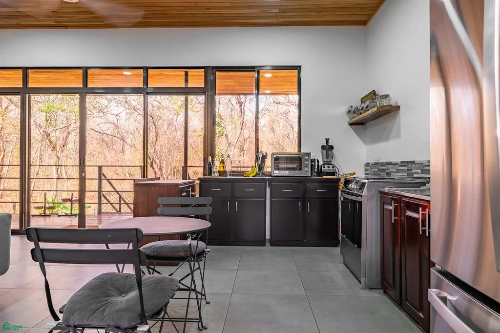 The covered terrace overlooks dry tropical forest and a mature native pochote tree that attracts birdlife and provides shade. There’s ample room at the front of the property to add a private pool, with beach access only steps away.