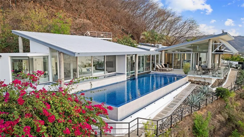 Perched dramatically above the vibrant coastal town of Playas del Coco, Casa Holmes—locally known as “The Glass House”—is a truly iconic residence where award-winning architecture meets the raw beauty of Costa Rica’s natural landscape.