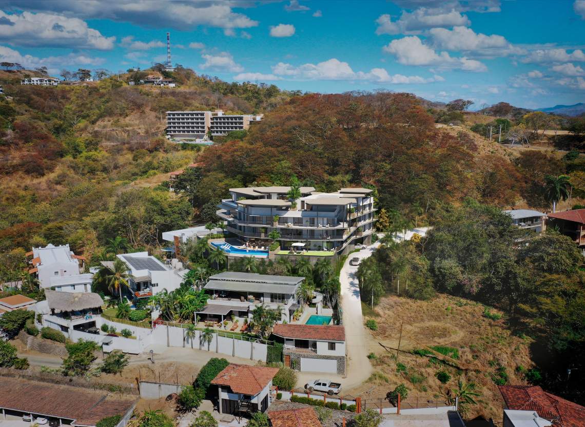 PENTHOUSE PH1 – The epitome of luxurious living! This residence features 4 bedrooms, and 4.5 bathrooms, boasting awe-inspiring vistas of Playa Langosta Natural Preserve and beyond. With double-height social areas and an open-concept design, the home includes a stunning spiral staircase leading to a private rooftop lounge. Enjoy panoramic ocean views of Langosta and Tamarindo bays, offering an ideal spot for sunset viewing with outdoor seating areas, a kitchen, and a jacuzzi. Spanning 423m2 of living space, the unit provides 3 underground parking spaces and 1 warehouse.